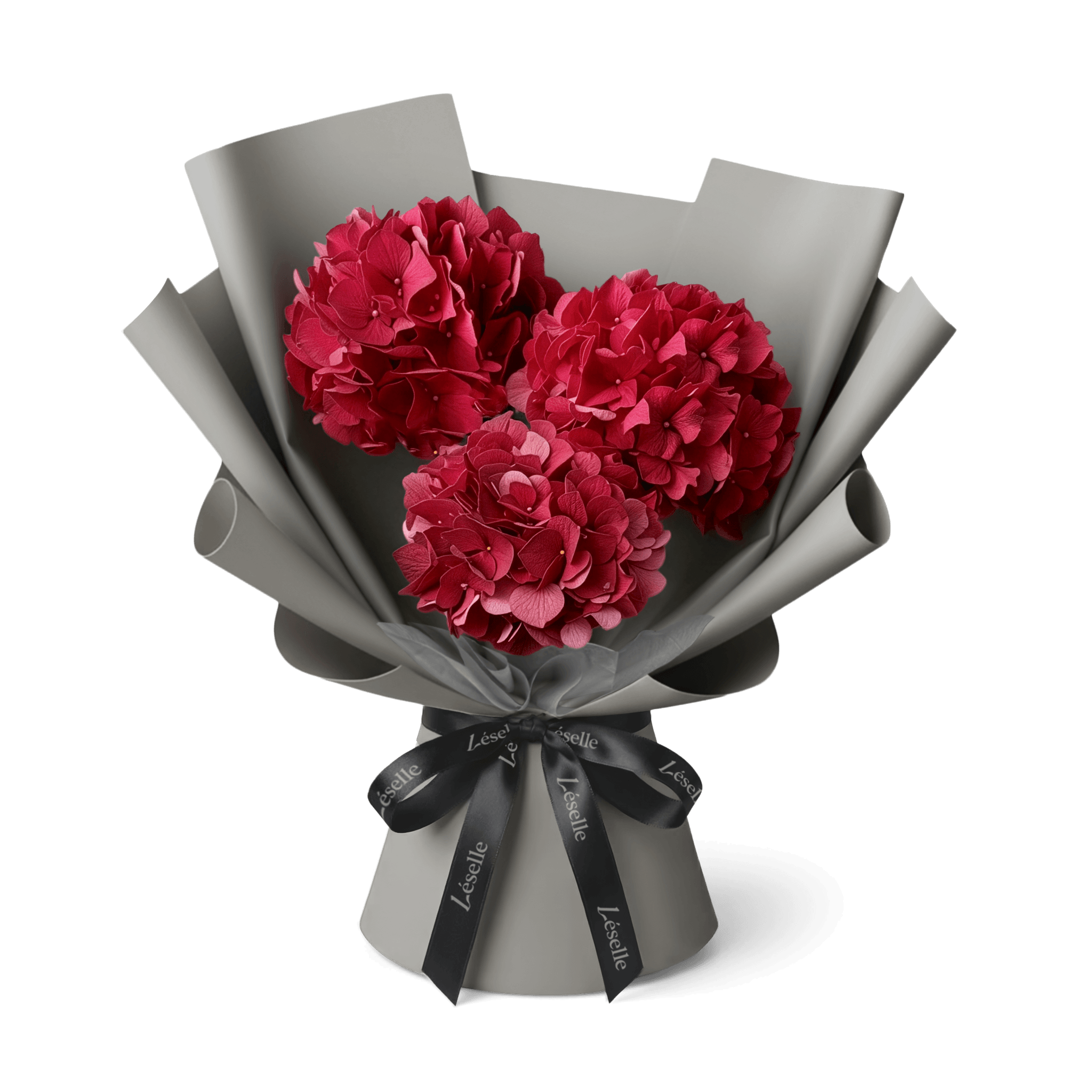 "Declaration of Love" 3-Stem Red Hydrangea Bouquet